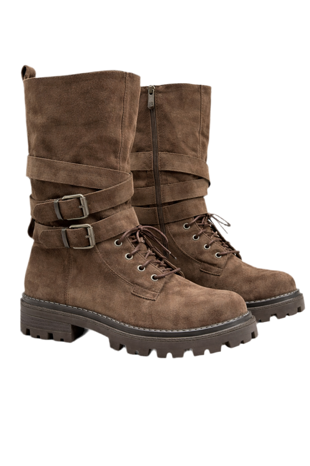 Deze bruine boot is stoer, stijlvol en helemaal on-trend. De combinatie van veters en gespen geeft de laars een krachtige look die perfect past bij een edgy outfit.