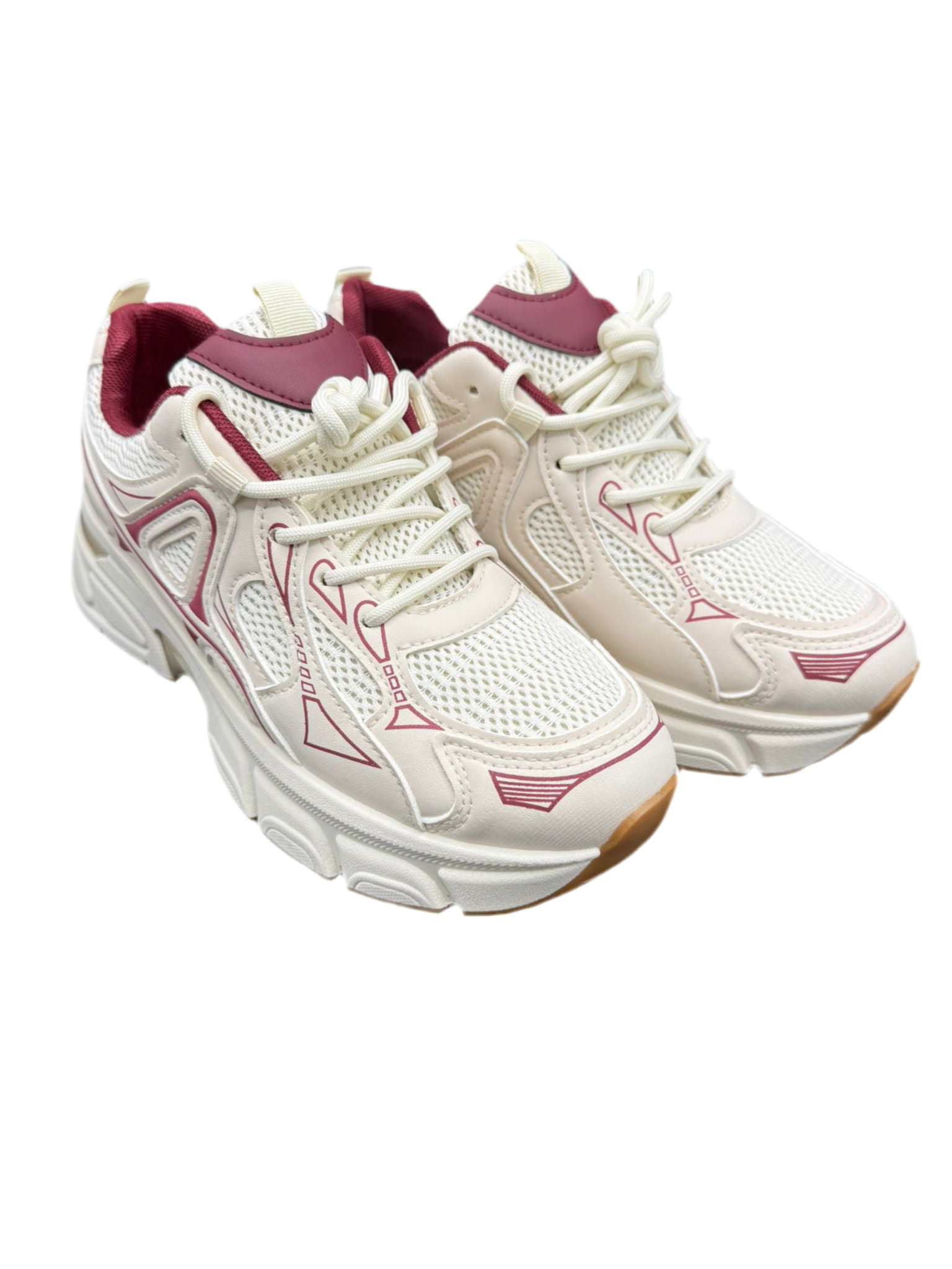 Deze sneaker geeft je outfit direct karakter. De combinatie van wit met bordeauxrode accenten zorgt voor een sportieve en opvallende look, zonder te overdrijven. Stoer, comfortabel en helemaal on-trend.