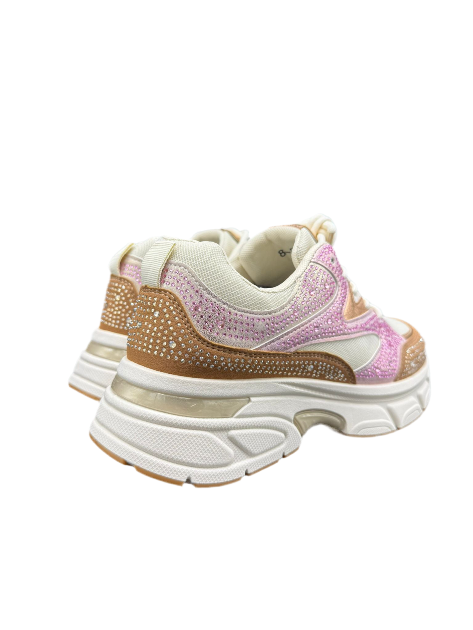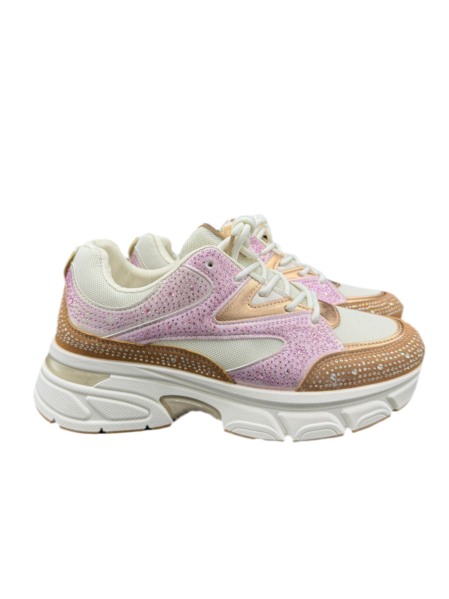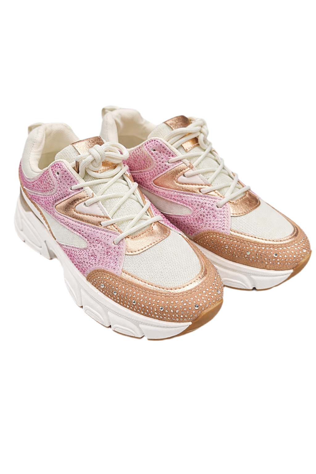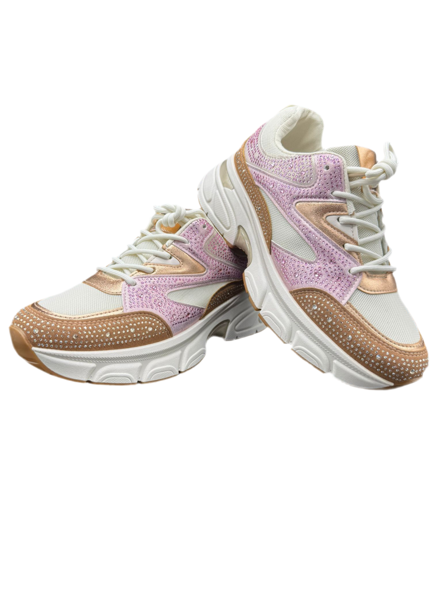 Deze sneaker combineert stoer met glam. De roze en metallic details geven ’m een speelse, luxe touch, terwijl de chunky zool zorgt voor comfort en power.